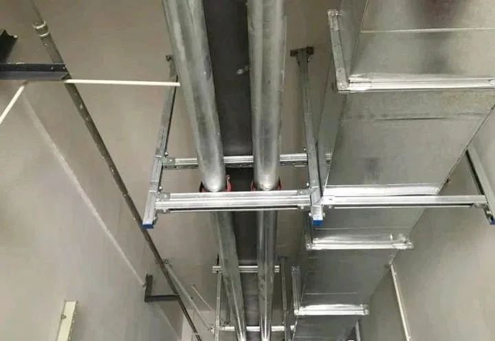 成品支吊架,是将给排水、空调通风、消防、强电、弱电等安装工程中的各专业的支吊架综合在一起,通过标准化构件组合形成统一的管道支吊架系统。