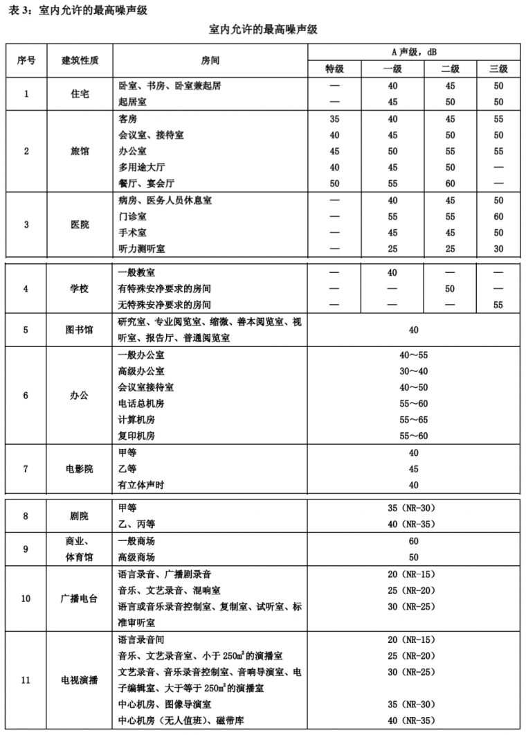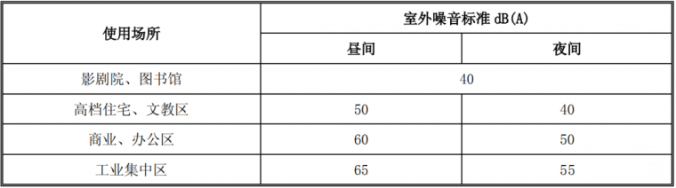 空调室外机噪音是不可避免的,其噪音主要有振动、风机和机械噪音组成,噪音影响直接与空调能力、风机风量和安装的位置相关联, 应根据不同场所的噪音要求进行空调主机机型及位置的选择, 以下为几类典型场所的噪音要求,主机运行时的噪音应控制在此之内,否则应采取相应的减噪措施: