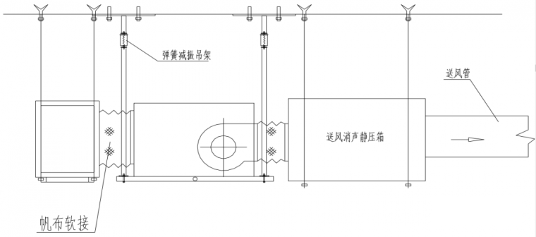 4) 风管始端与振动设备连接处必须设置支吊架。