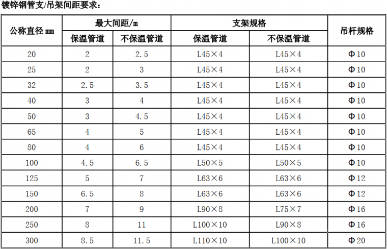 水管的振动噪音是由设备的振动传递和水流动产生的扰动冲击造成,其由设备振动频率、介质扰动频率及管道受冲击的自振叠加而成, 水泵、空调设备与水管之间均需加装软接,吊装间距应符合下表要求:
