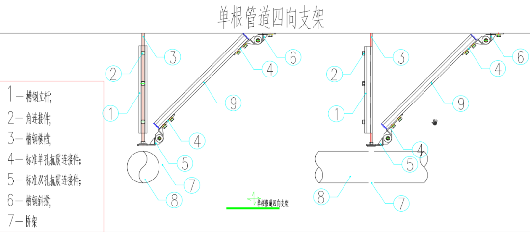 组成抗震支吊架的所有构件采用成品支架构件,连接紧固件的构造应便于安装。