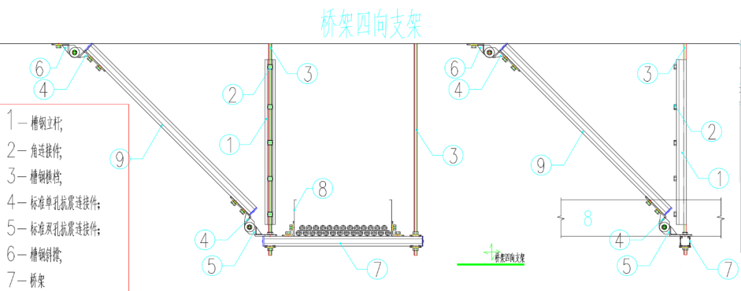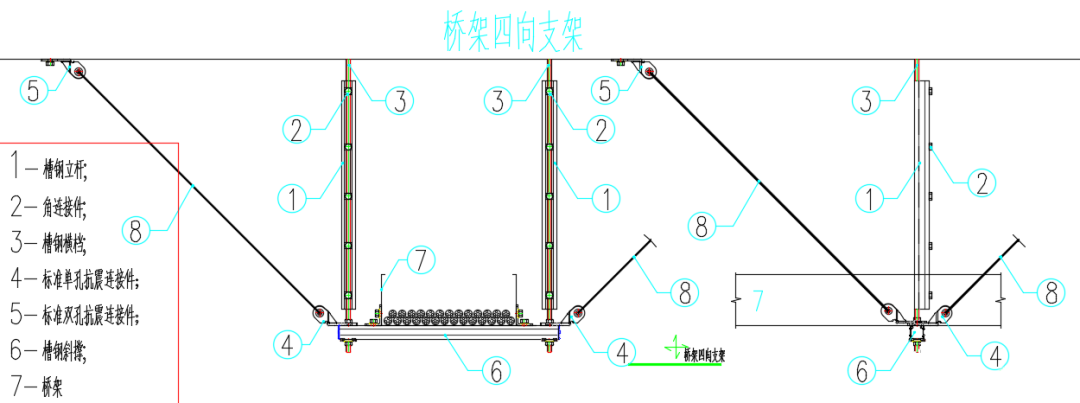 2.5、抗震支架的布置应严格根据GB50981-2014《建筑机电工程抗震设计规范》第8.3章的要求设置;2.6、管线水平地震力综合系数按GB50981-2014《建筑机电工程抗震设计规范》第8.2.4要求,并参照3.4.5条和表3.4.1的参数取用进行计算。当计算结果不足0.5时取0.5,超过0.5按实际计算值;2.7、抗震支架受力的力学验算应包括:支架与建筑结构连接验算(含锚栓和连接件);杆件受力验算(含受拉和受压校核);支架抗震连接件受力校核等;2.8、抗震支架吊杆及斜撑的长细比要求应满足GB50981-2014《建筑机电工程抗震设计规范》第8.3.8条的要求。2.9、电气管路不应穿过抗震缝,当必须穿越抗震缝时应符合下列规定:1)、采用金属导管、刚性塑料导管敷设时宜靠近建筑物的下部穿越,且应在抗震缝两边各装一个柔性管接头;2)、电缆梯架、电缆槽盒、母线槽盒在抗震缝两侧应设置伸缩节;3)、抗震缝的两端应设置抗震支撑节点并与结构可靠连接;2.10、管道穿过内墙或楼板时,应设置管套;管套与管道间的缝隙,应采用柔性防火材料封堵