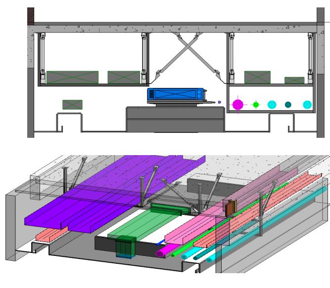 运用BIM的可视化管理,模拟化演练,打破现有支吊架安装的传统模式,全面预先在安装位置的结构里放置预埋件,抗震支吊架安装时,只需用相应的连接构件与预埋件进行紧固安装,避免了锚栓对结构的破坏。