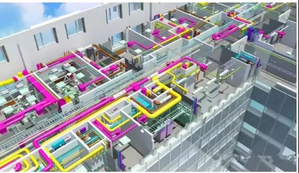BIM技术在建筑、排水、机电管线交叉、排布避让原则,管线综合策划的重点是屋面、楼层走廊吊顶和地下室。设备机房(给水、消防泵房、空调机房)等部位重点进行排布策划。