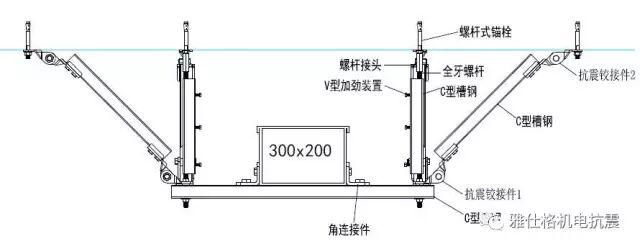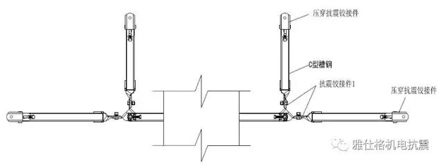 2、抗震支吊架系统由C型成品槽钢、专用抗震连接件、抗震管卡、裂缝混凝土用后扩底锚栓或者钢结构梁夹组成,抗震连接件与槽钢通过机械连接可以随意调节抗震支吊架的尺寸、高度。抗震支吊架现场应做到不焊接,并由锚栓与原有混凝土结构可靠连接,钢结构采用梁夹固定。