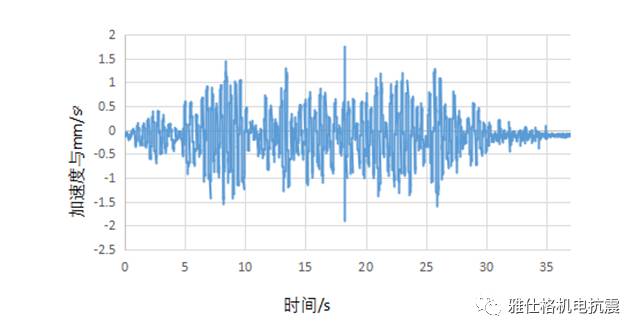 与位移相比,加速度更能体现出震害破坏的剧烈程度,三通,弯头连接部位对加速度的变化也更敏感,本文列举了两组管道系统三通部位的Y轴方向的加速度计采集值(见下图),从图中可以看出装有抗震支吊架的管路整体加速度较小,仅在(-1, 1)之间变化,加速度波动幅度不大,整体震动较平稳;而装有承重支架的管路加速度值则略大,在(-1。5, 1。5)之间,但波动幅度大,表明称重支吊架竹路整体较柔,震动剧烈且位移较大。